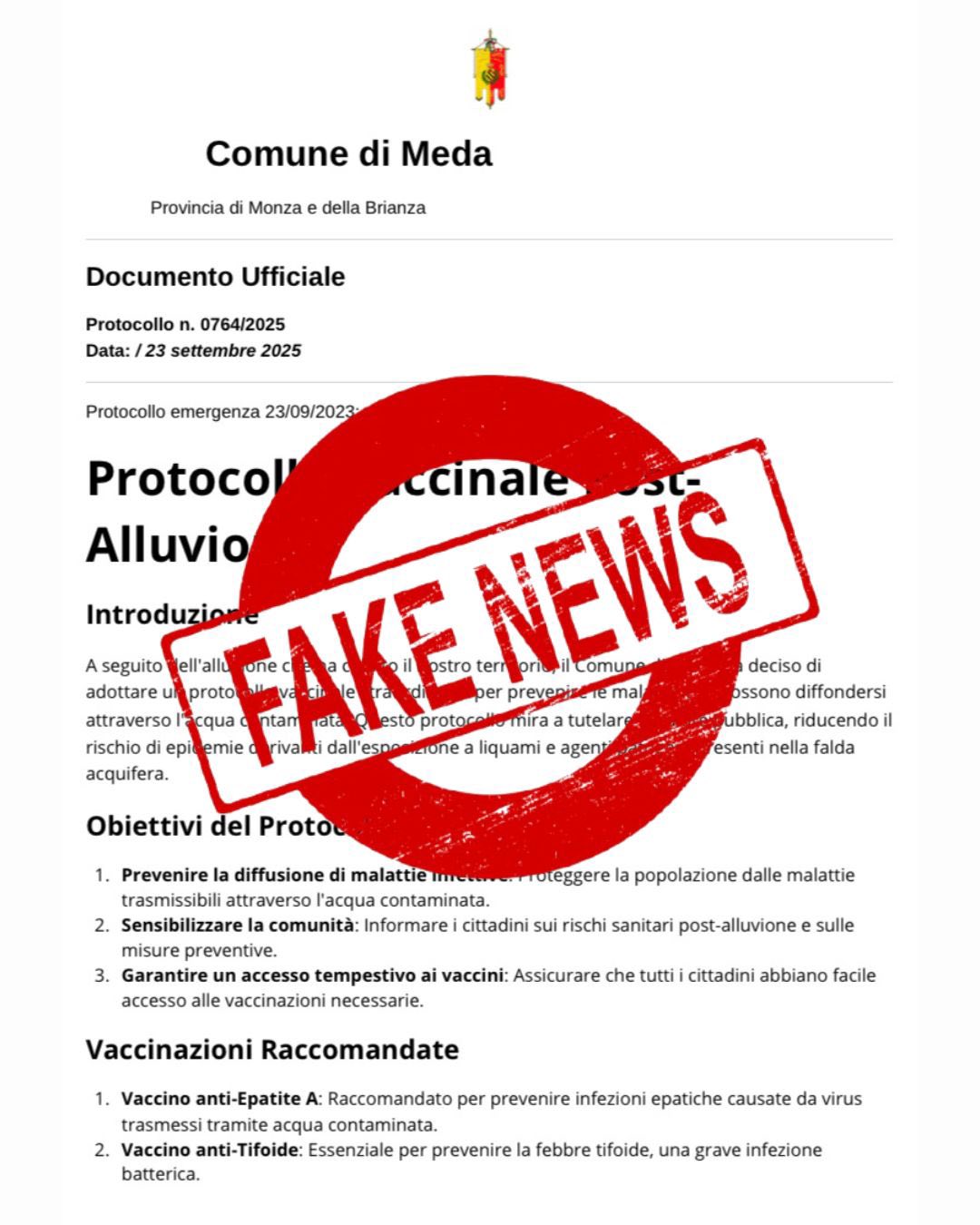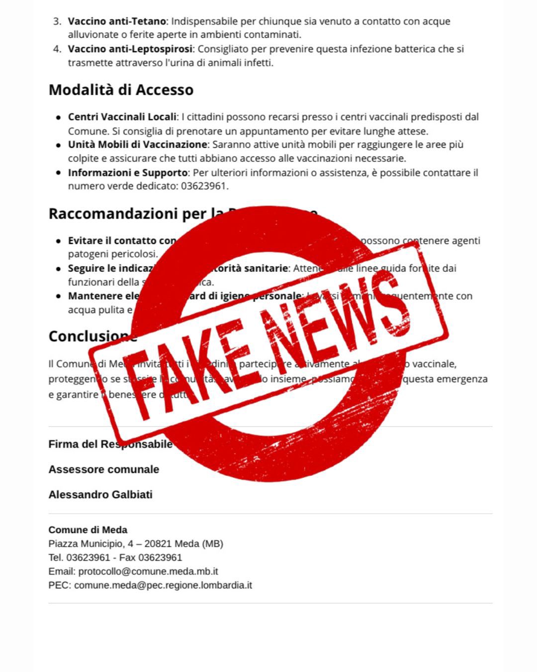 Si avvisa che l'allegata comunicazione, che sta circolando attualmente online, è FALSA.