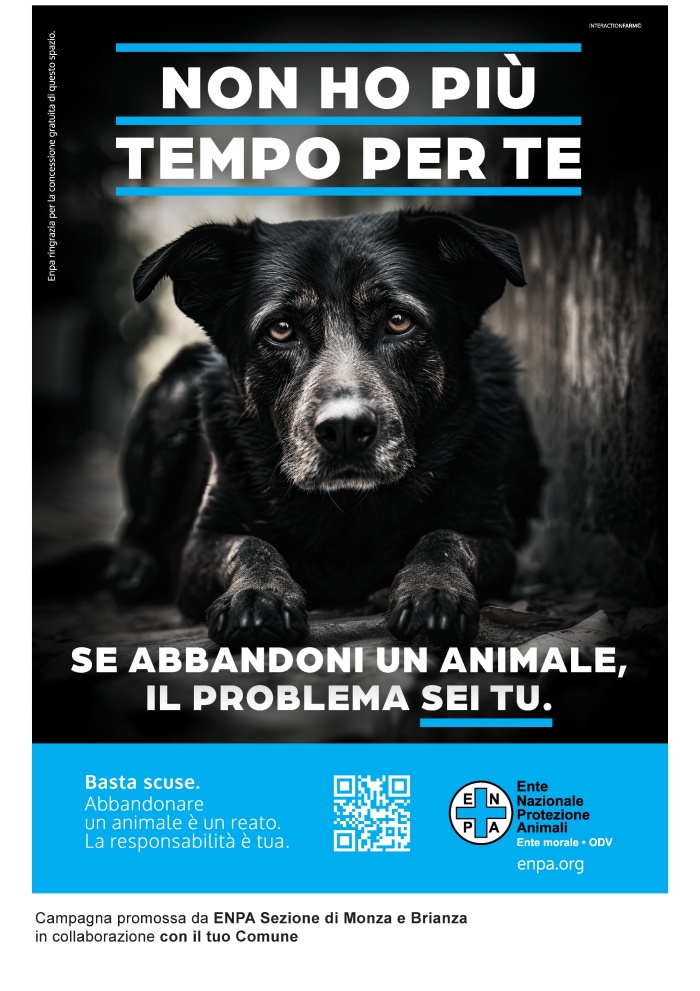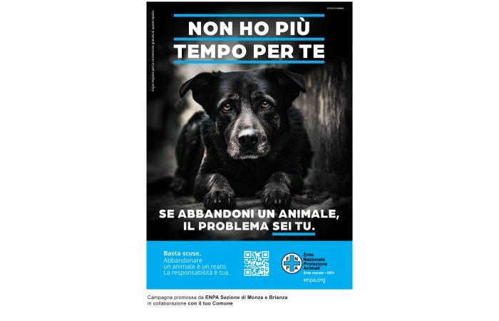 Sensibilizzare l’opinione pubblica contro il triste fenomeno dell’abbandono estivo degli animali d’affezione. Questo lo scopo dell’iniziativa "BASTA SCUSE" la campagna di comunicazione promossa dall’ENPA Monza Brianza (Ente Nazionale Protezione Animali) estesa anche a tutti i Comuni del territorio brianzolo.