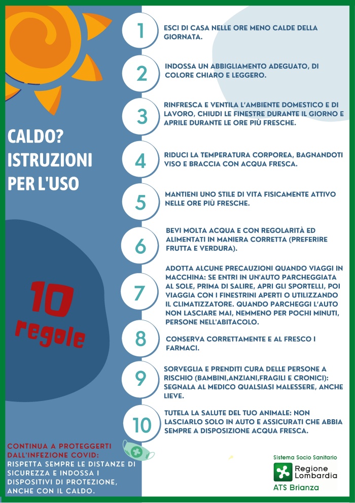 Ricordiamo i consigli di ATS Brianza per alleviare il disagio e prevenire colpi di calore, soprattutto per più fragili.