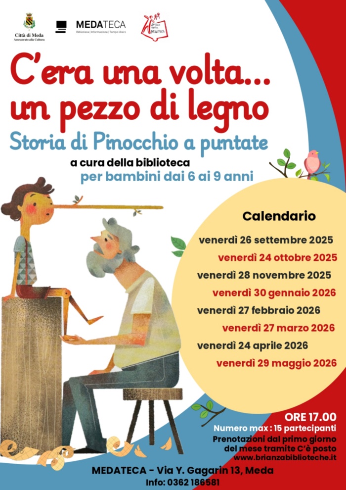 Descrizione Lettura del libro Pinocchio a puntate a cura del personale della Medateca. Prenotazioni, dal primo giorno di ciascun mese, qui