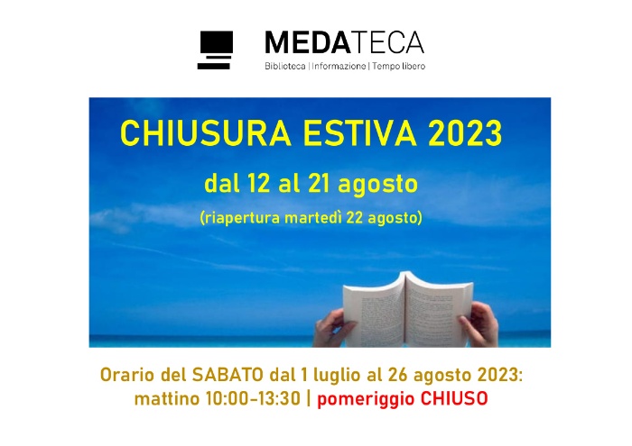 Dal 01 luglio 2023 al 26 agosto 2023 la Medateca osserverà il seguente orario: