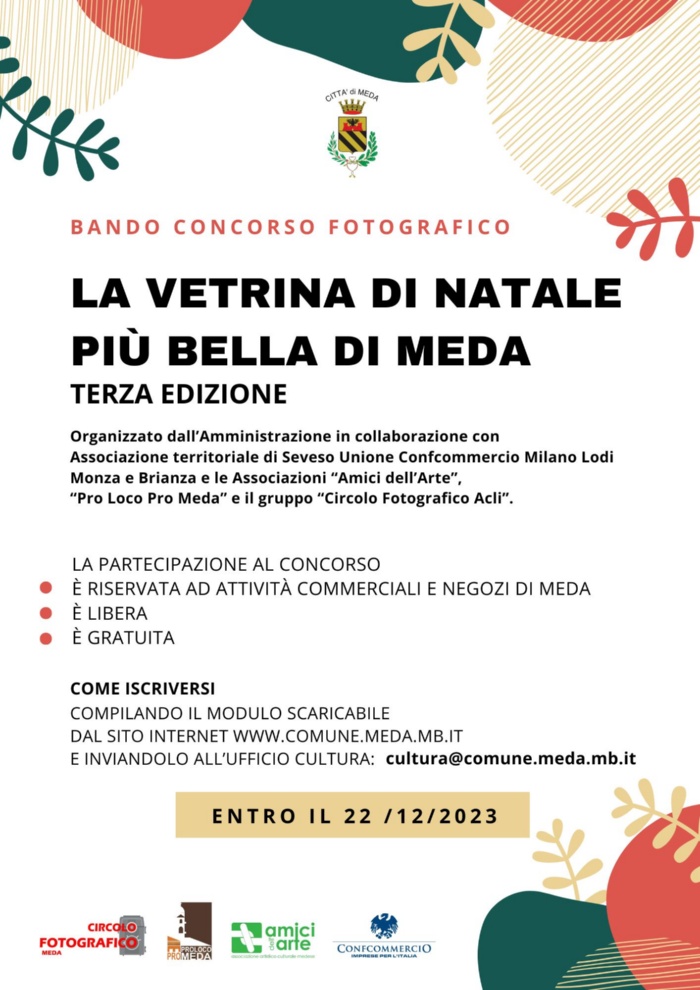 L'Amministrazione Comunale, in collaborazione con Associazione territoriale di Seveso Unione Confcommercio Milano Lodi Monza e Brianza e le Associazioni “Amici dell’Arte”, “Pro Loco Pro Meda” propone la terza edizione del concorso fotografico “La vetrina di Natale più bella di Meda”.