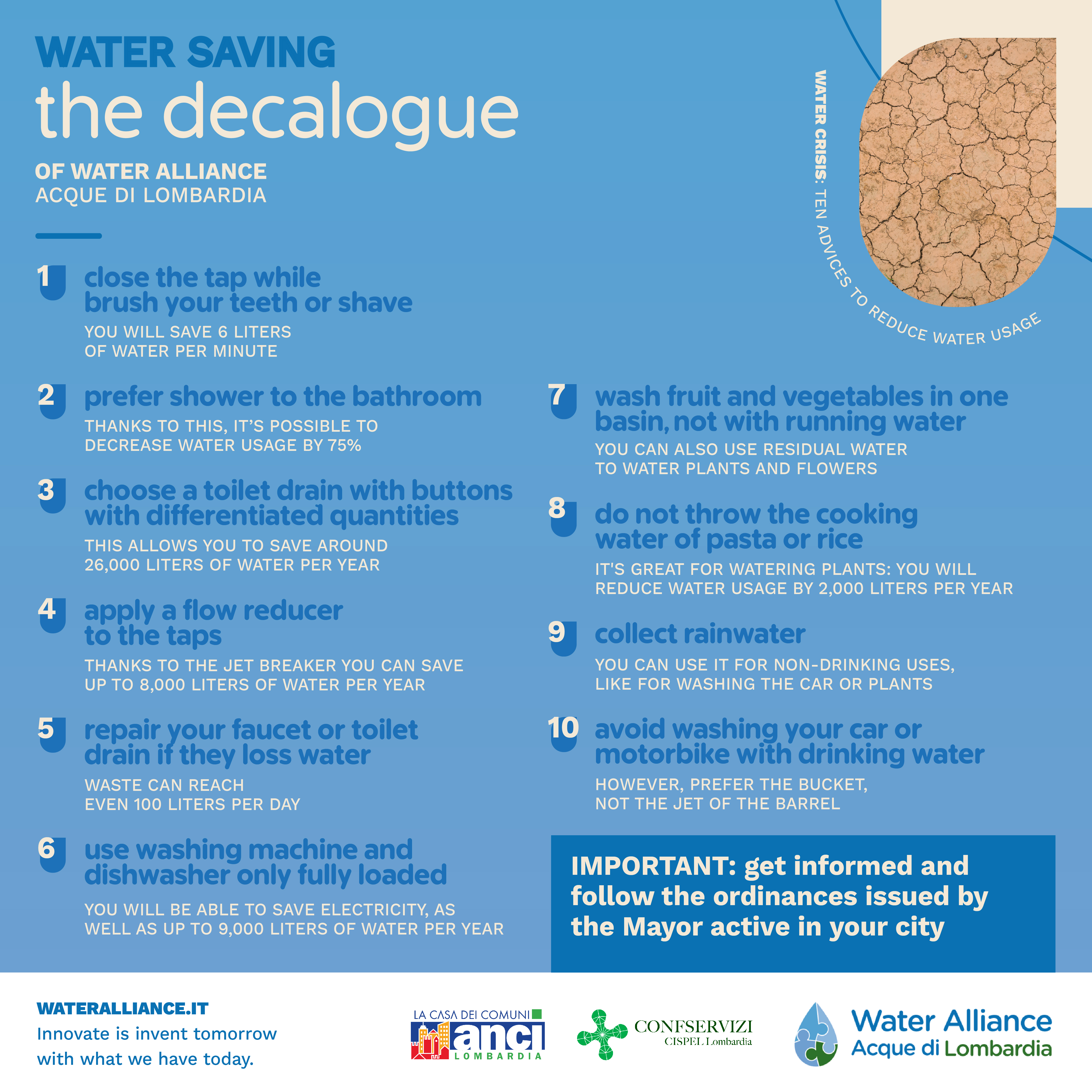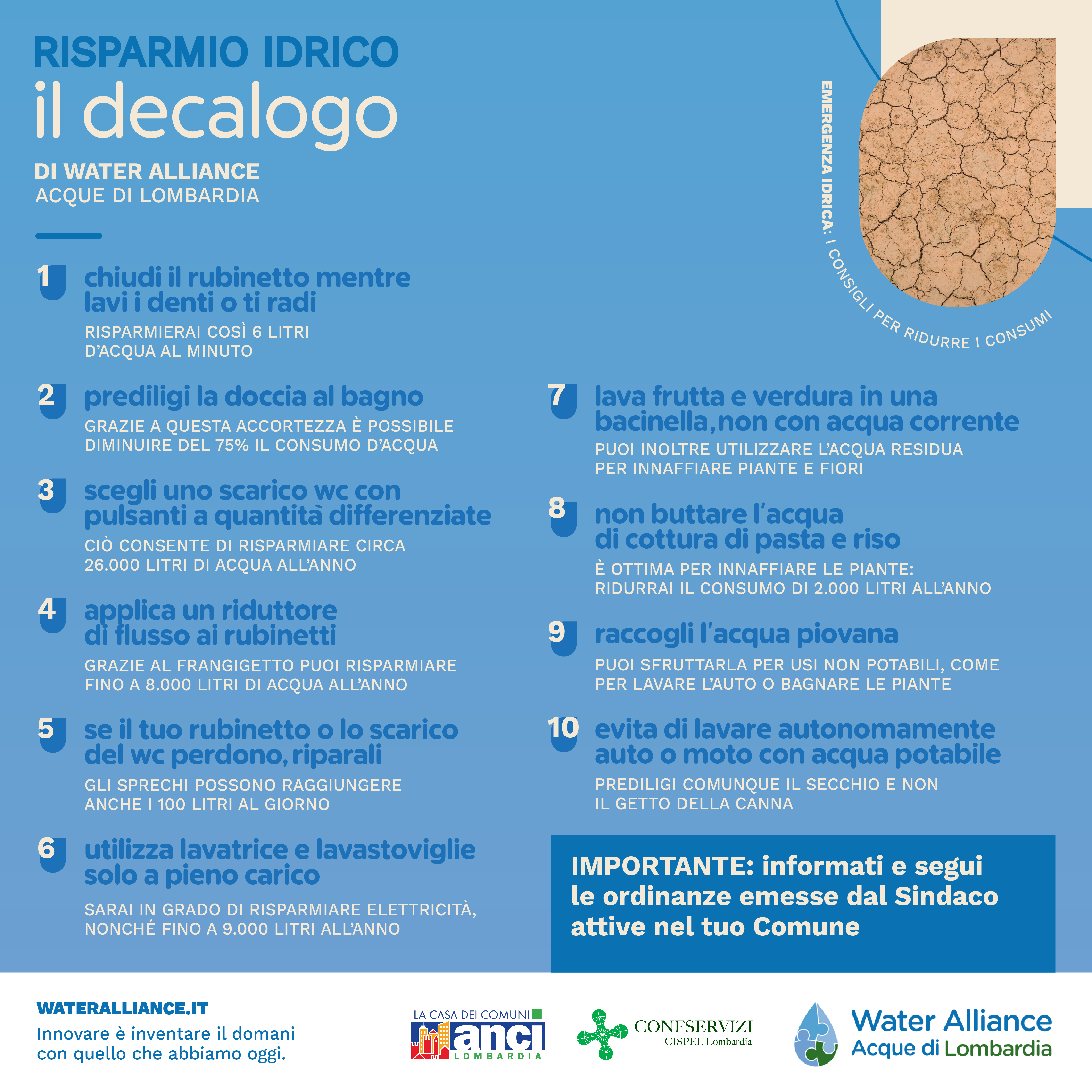 DISPOSIZIONI RISPARMIO IDRICO E LIMITAZIONI PER L'UTILIZZO DELL'ACQUA POTABILE