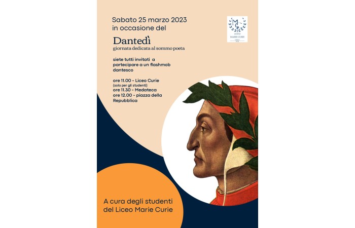 Flashmob dantesco Ore 11:00 - Liceo Curie ( solo per studenti) Ore 11:30 - Medateca Ore 12:00 - piazza della Repubblica Previous Next