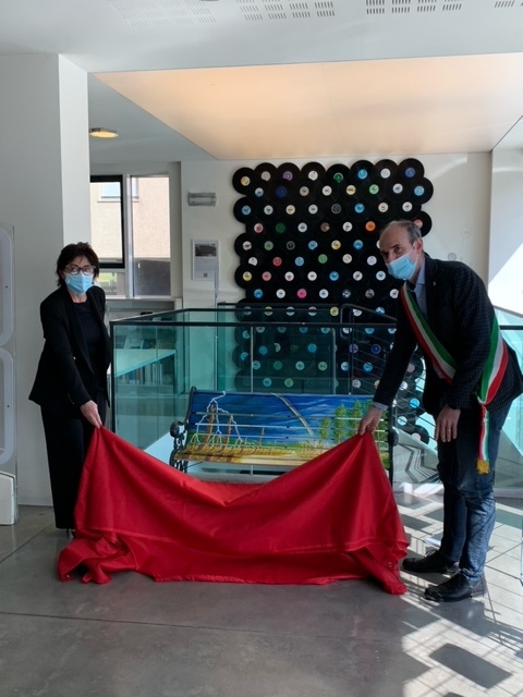 Un’opera d’arte sintetizza tutti questi stati d’animo e rappresenterà per sempre la Giornata del 18 marzo per Meda: è la panchina realizzata dal pittore Bruno Riccardi donata alla collettività dai Fratelli Confalonieri in ricordo della loro mamma, prima vittima medese di covid. Questa mattina, dopo il minuto di raccoglimento osservato in piazza Municipio, la panchina è stata ufficialmente consegnata dalla Famiglia al Comune - rappresentato dal sindaco Luca Santambrogio, dalla vicesindaco Alessia Villa e dal comandante della Polizia Locale Claudio Delpero - e posizionata nel luogo pubblico che la ospiterà: la Medateca.
