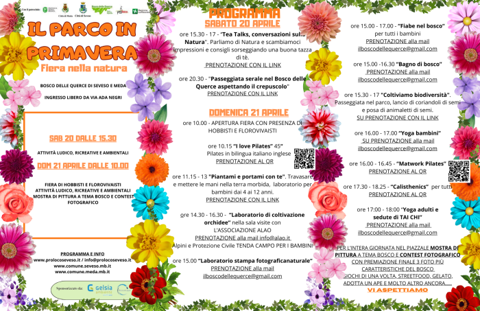 L'Amministrazione Comunale invita la cittedinanza all'evento "Il Parco in Primavera - Fiera nella Natura" che sio terrà presso il Bosco delle Querce di Seveso e Meda sabato 20 aprile dalle ore 15:30 e domenica 21 aprile dalle ore 10:00
