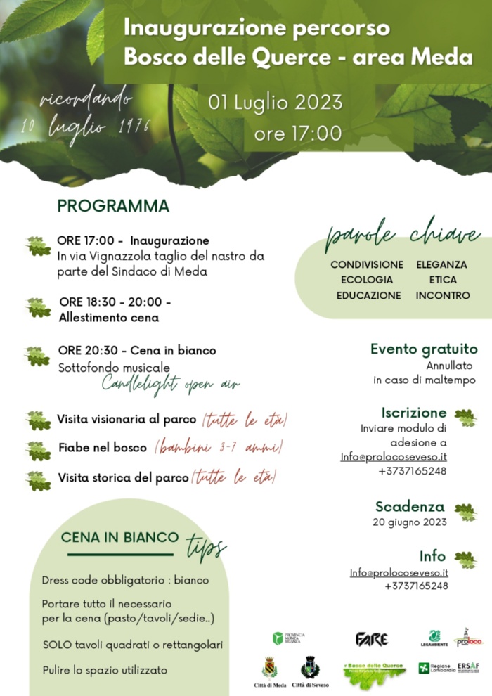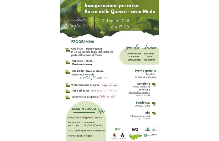Sabato 01 Luglio verrà inaugurato il nuovo percorso all'interno del Bosco delle Querce nel territorio del Comune di Meda, da via Vignazzola.
