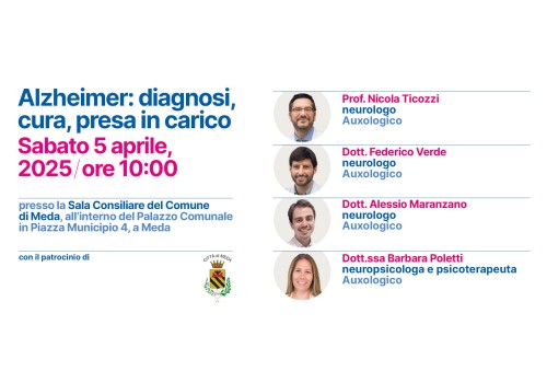 Auxologico organizza un evento in presenza a Meda, con il patrocinio della città di Meda, in cui medici neurologi parleranno della malattia di Alzheimer e del declino delle capacità cognitive.