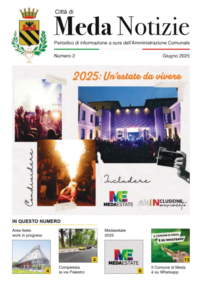Qualora non aveste ricevuto il periodico, vi invitiamo a segnalarcelo scrivendo alla mail: comunicazione.istituzionale@comune.meda.mb.it oppure a ritirare la vostra copia presso il Comune di Meda.