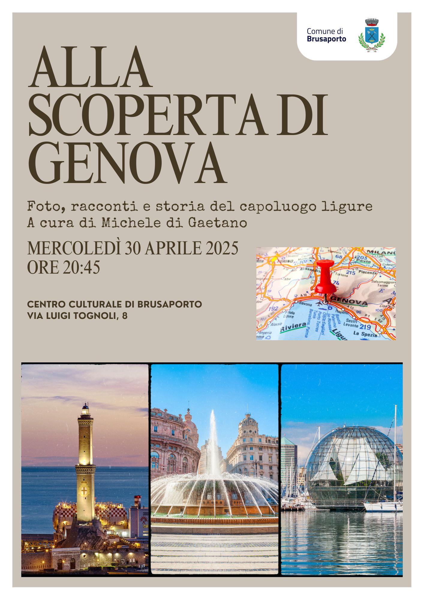 In occasione della gita del 3 maggio 2025 organizzata dal Comune di Brusaporto, Michele Di Gaetano ci parlerà del capoluogo della Liguria in una serata di approfondimento e scoperta.