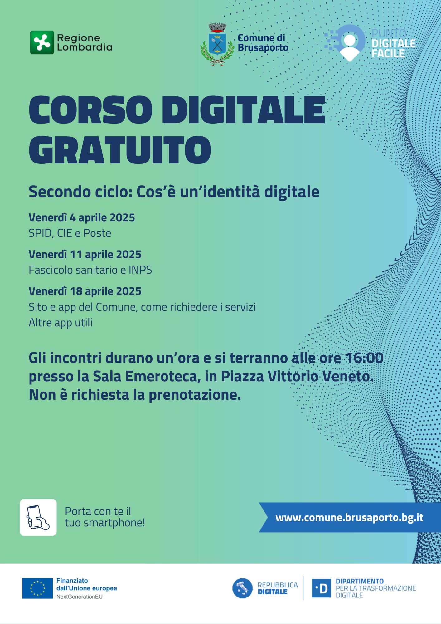 Il Corso digitale è un’occasione per avvicinarsi con maggiore consapevolezza al mondo digitale. Realizzato in collaborazione con Regione Lombardia e il Punto Digitale Facile, il corso sarà tenuto dal Facilitatore Digitale.