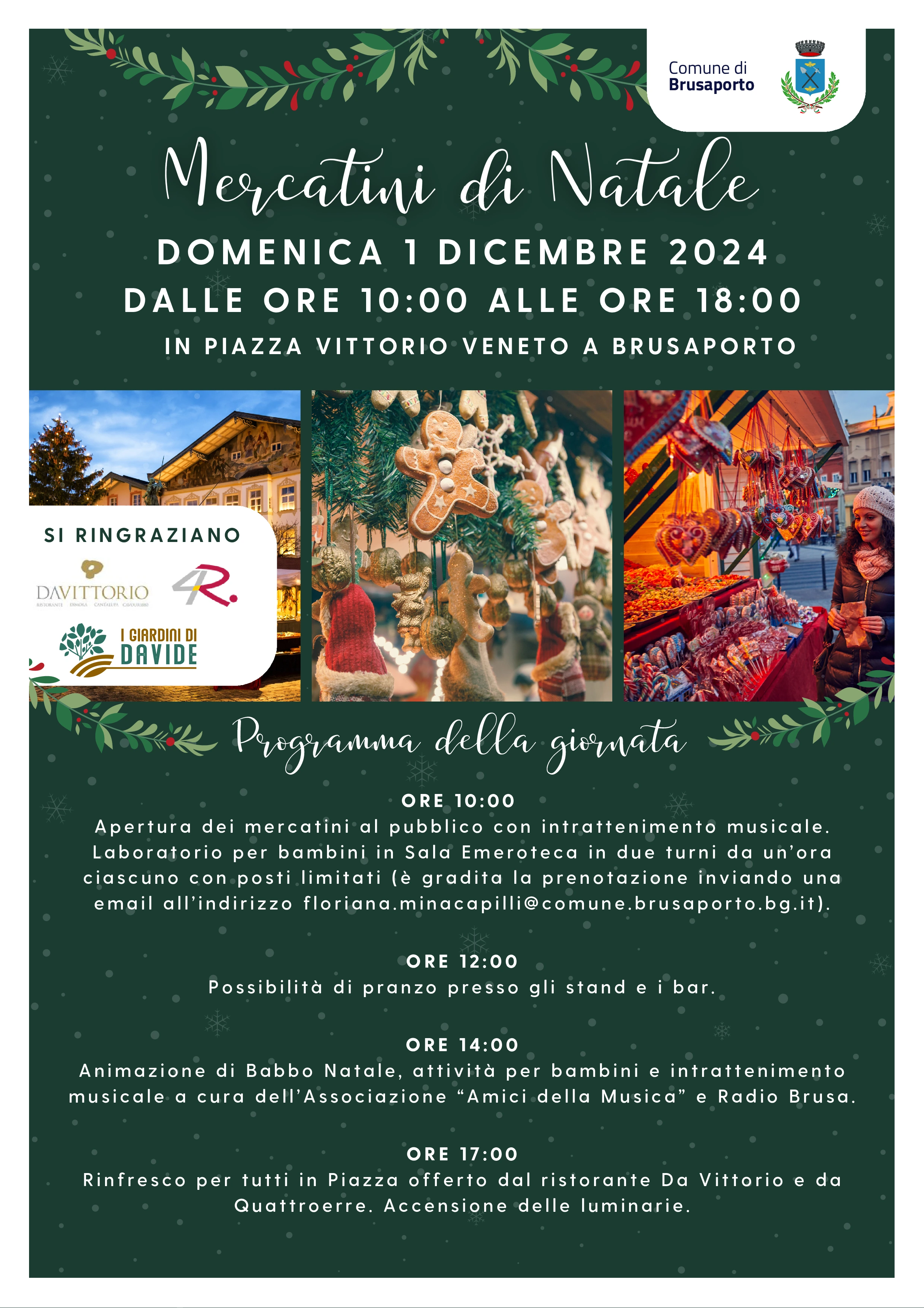 Ritornano anche quest'anno gli attesissimi Mercatini di Natale di Brusaporto!